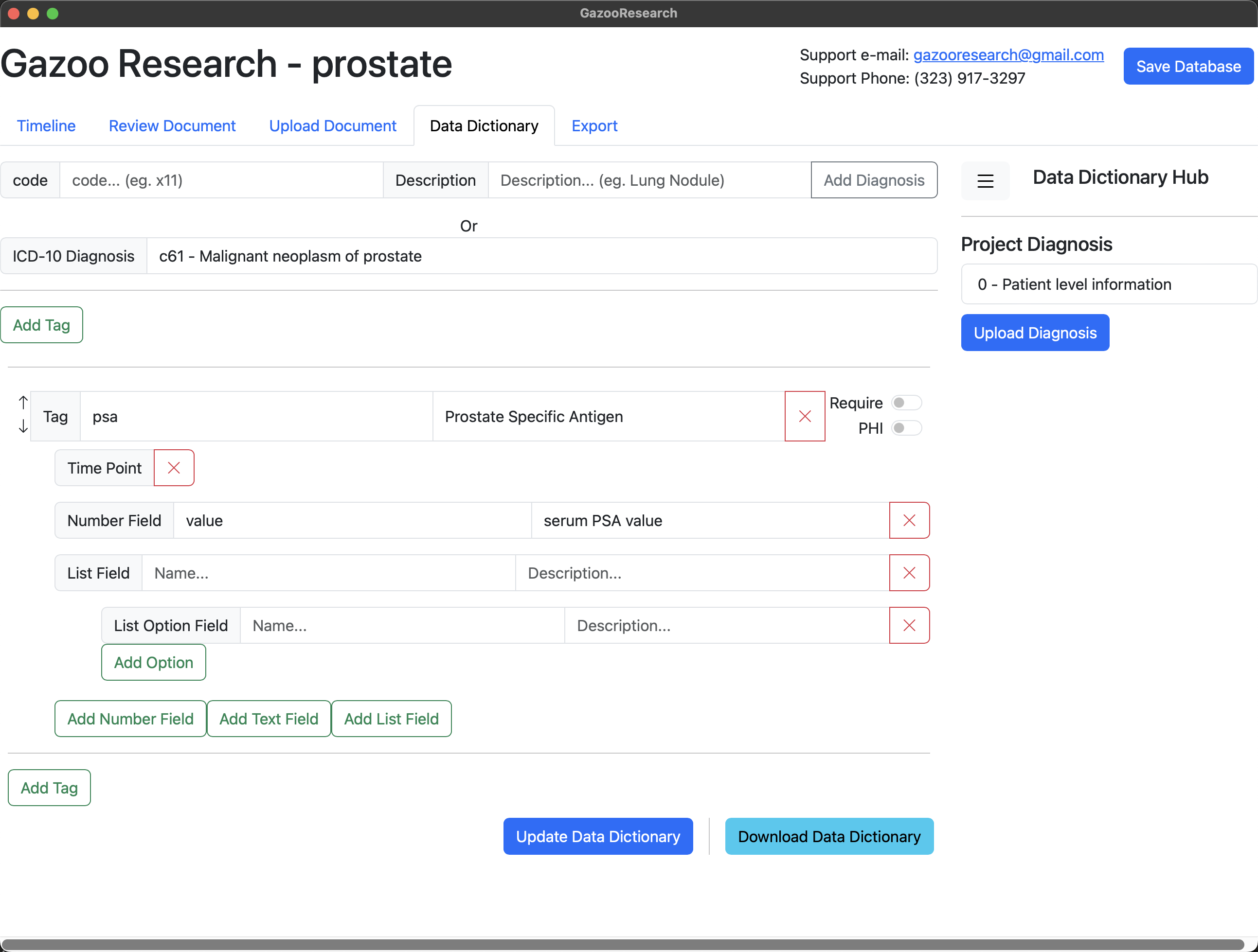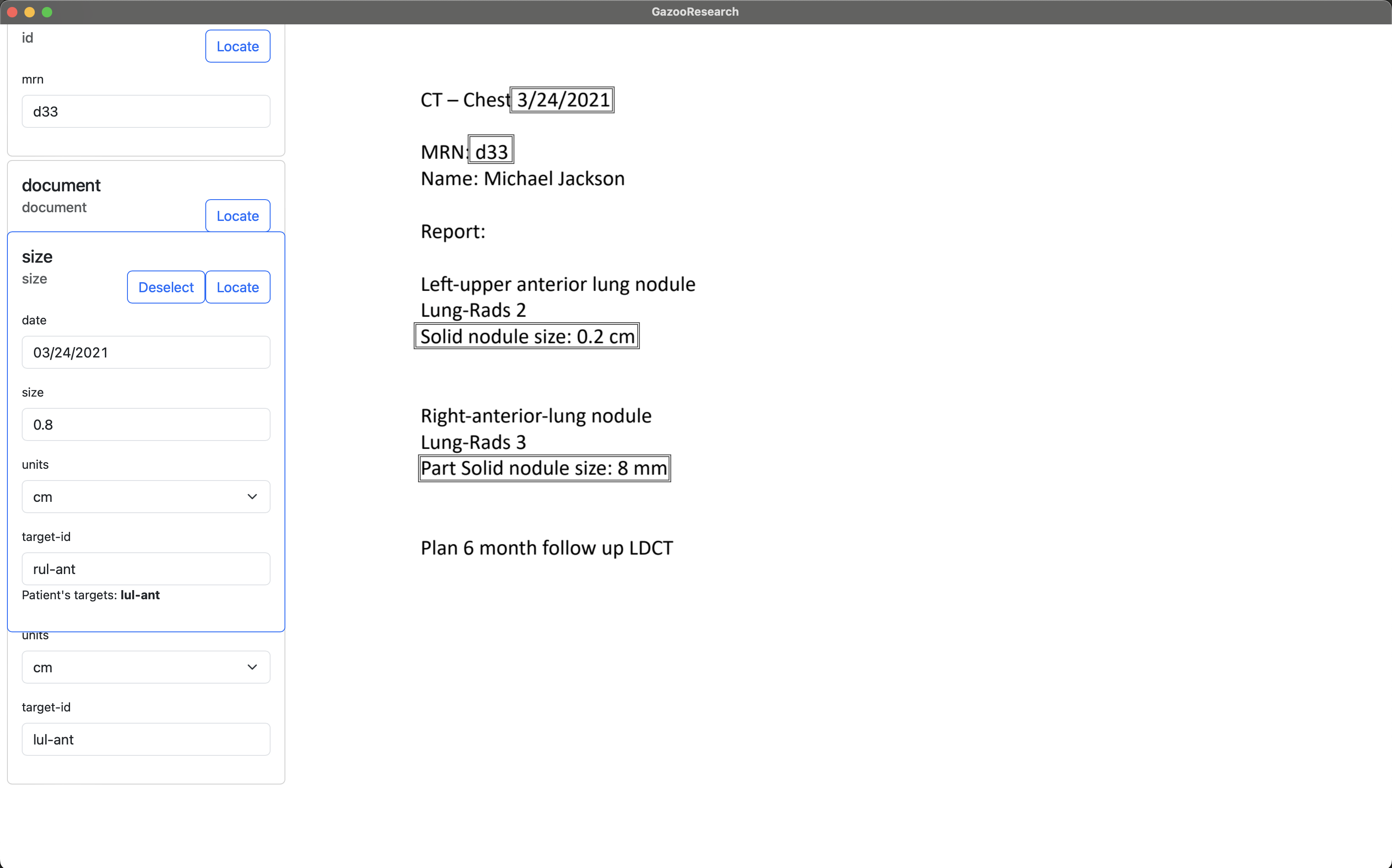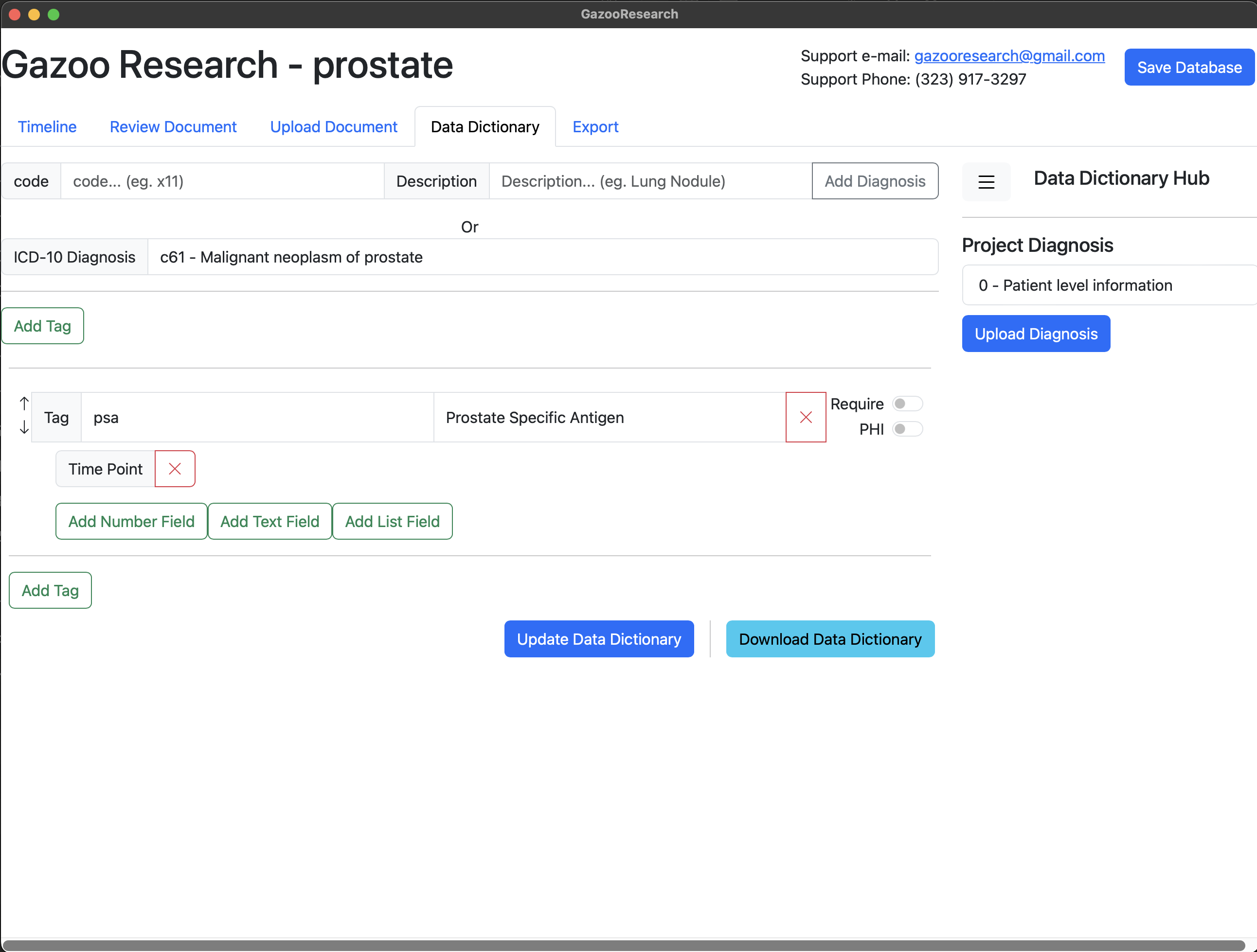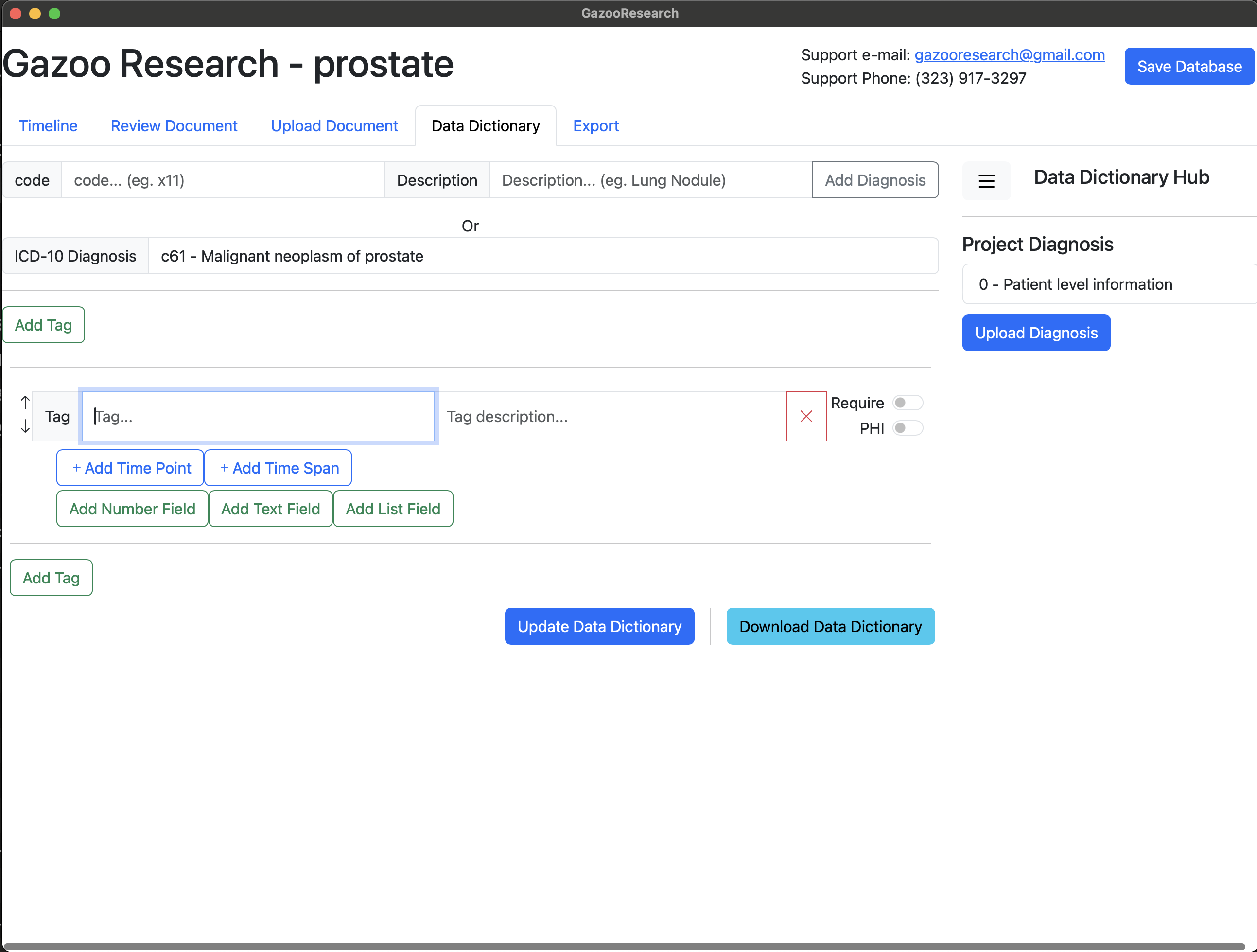 GazooResearch helps medical researchers (like yourself) cultivate massive medical databases. You'll find that GazooResearch has tools for every step of the research process from creating and using standardized data dictionaries, clinical information extraction, reviewing patient data for accuracy, data analysis, and it even provides data for the development of artificial intelligence algorithms.