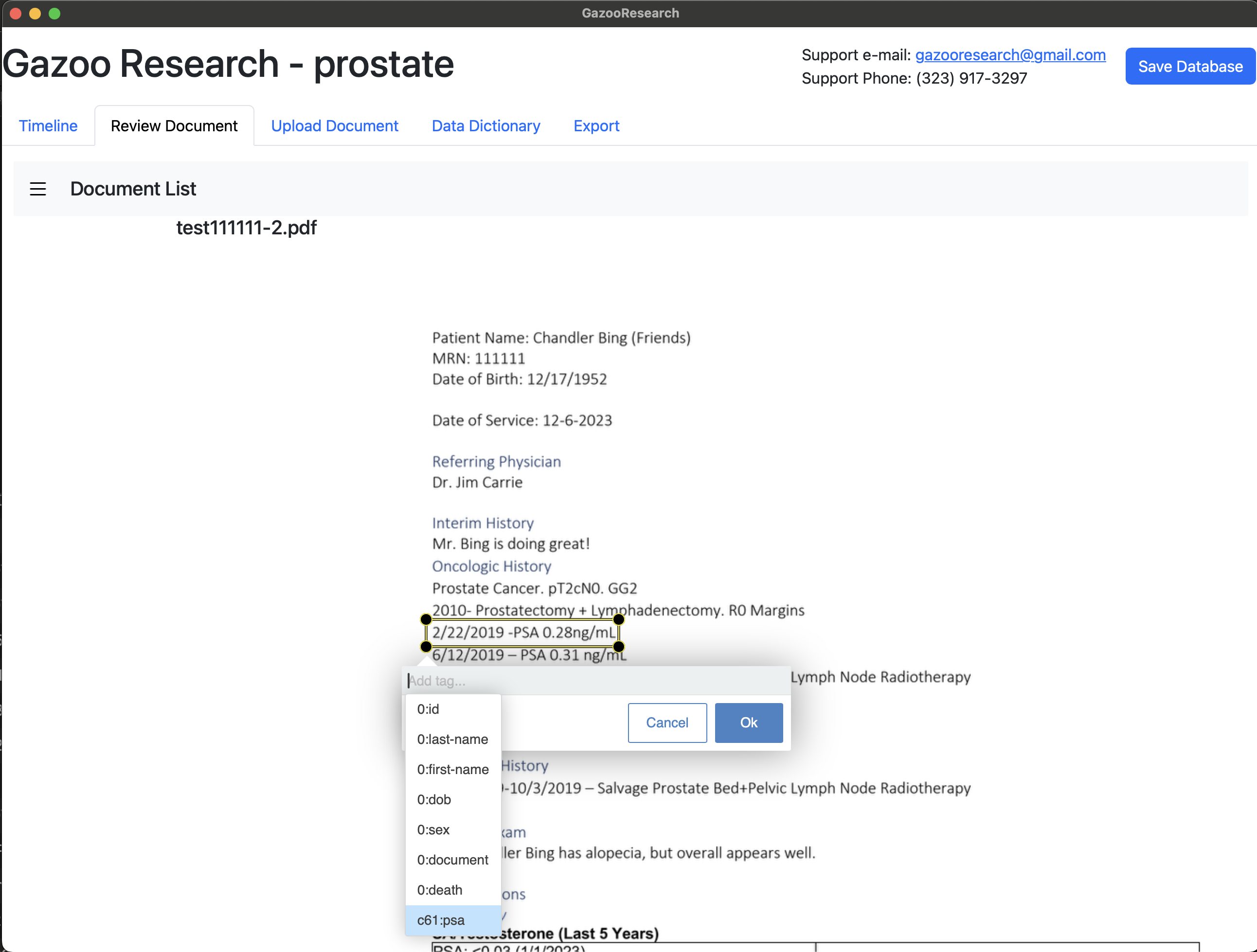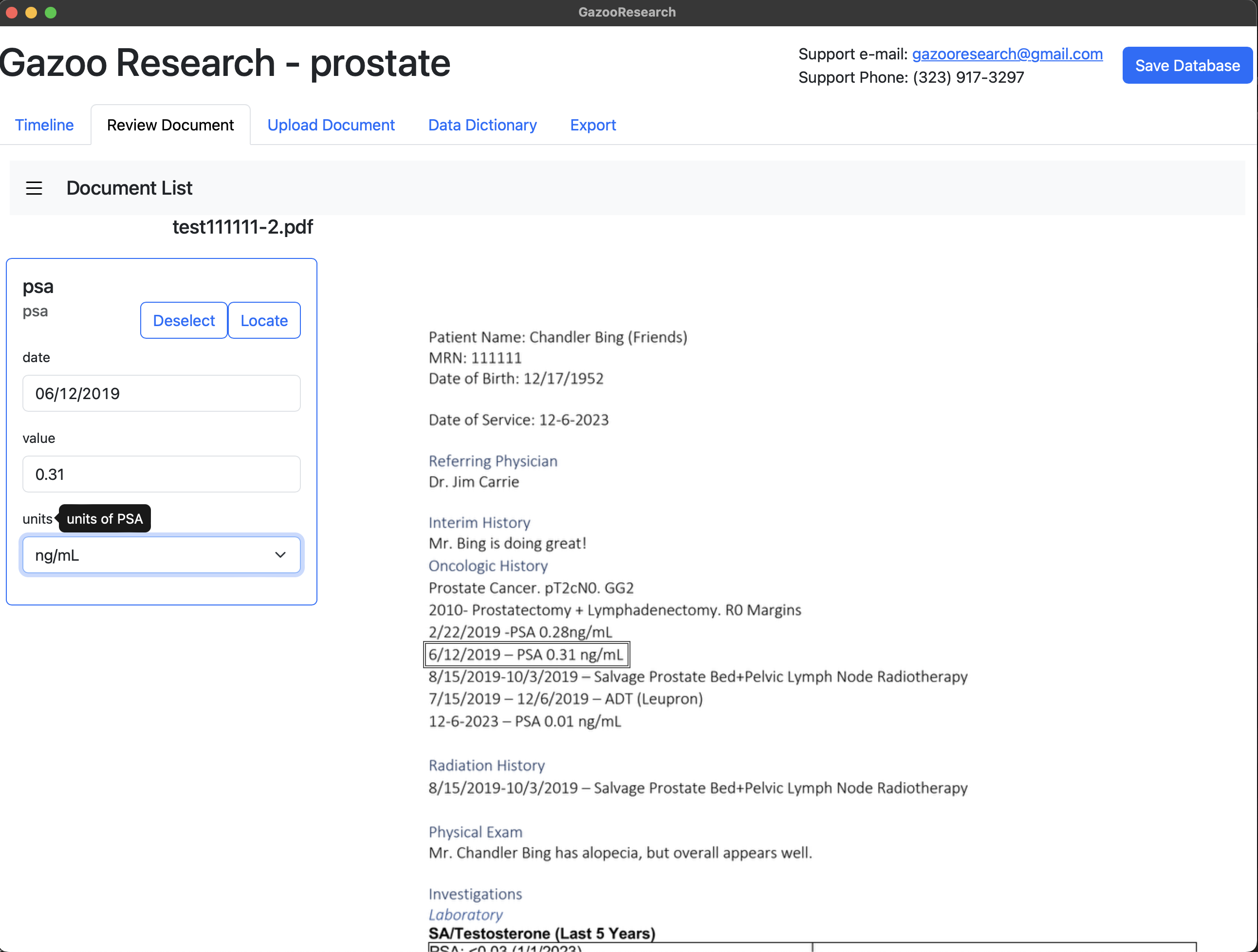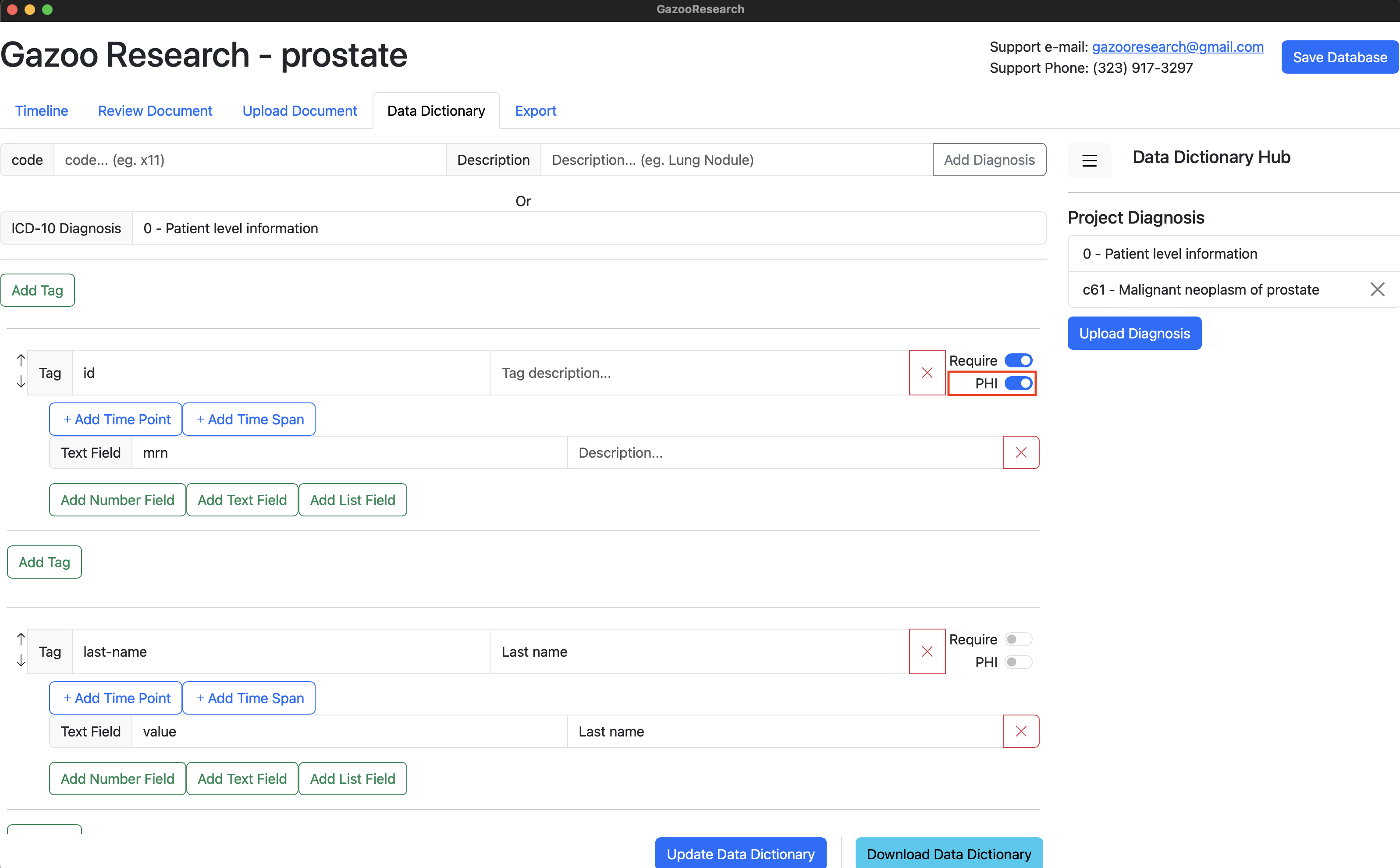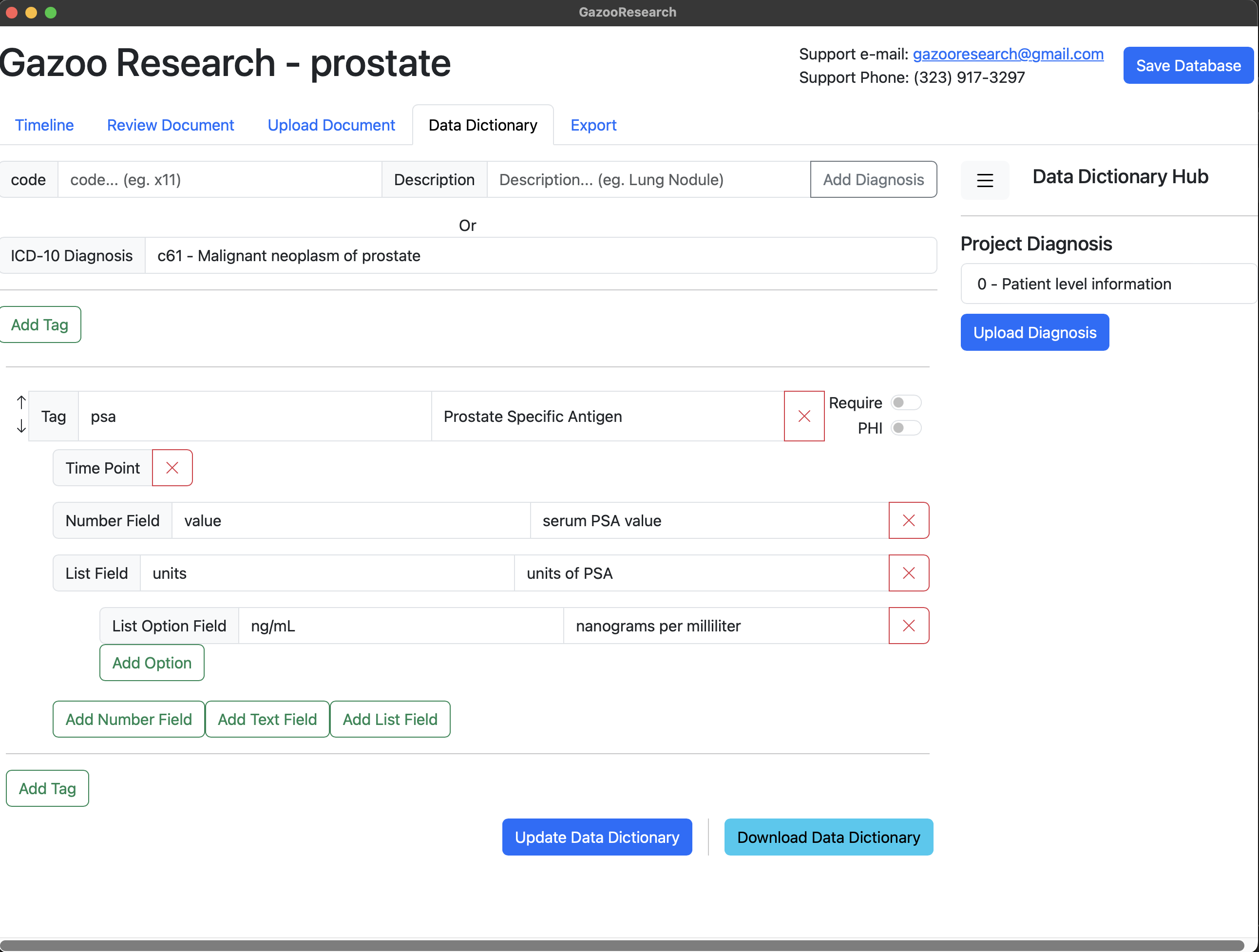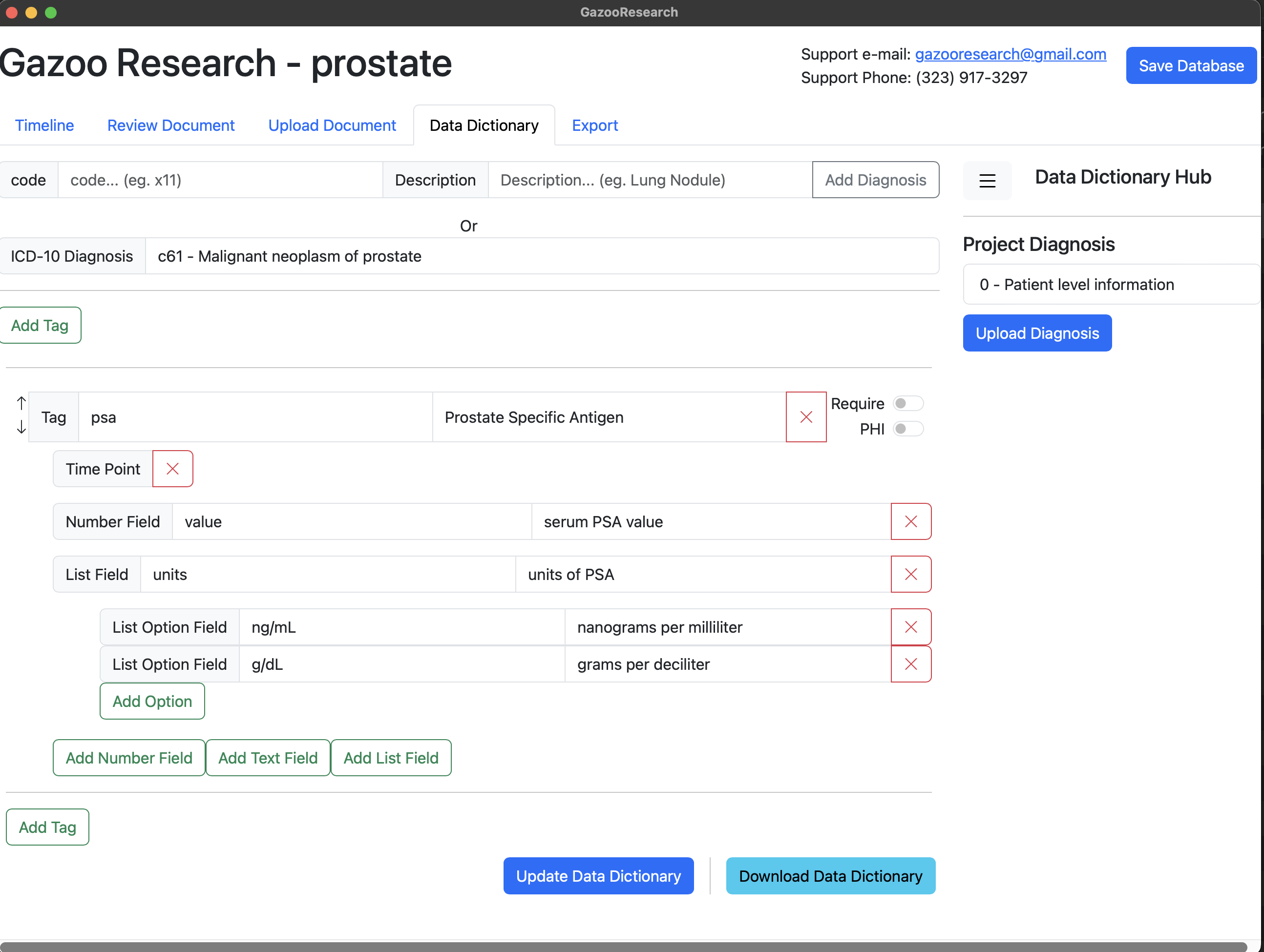 GazooResearch helps medical researchers (like yourself) cultivate massive medical databases. You'll find that GazooResearch has tools for every step of the research process from creating and using standardized data dictionaries, clinical information extraction, reviewing patient data for accuracy, data analysis, and it even provides data for the development of artificial intelligence algorithms.
